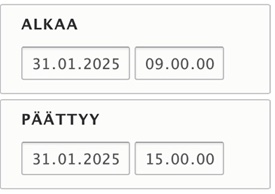 Tiedotteisiin tai työpaikkailmoituksiin ei päivämäärä- tai kellonaikakenttää kannata täyttää. Tarvittava ajankohtatieto merkitään niissä leipätekstiin.
