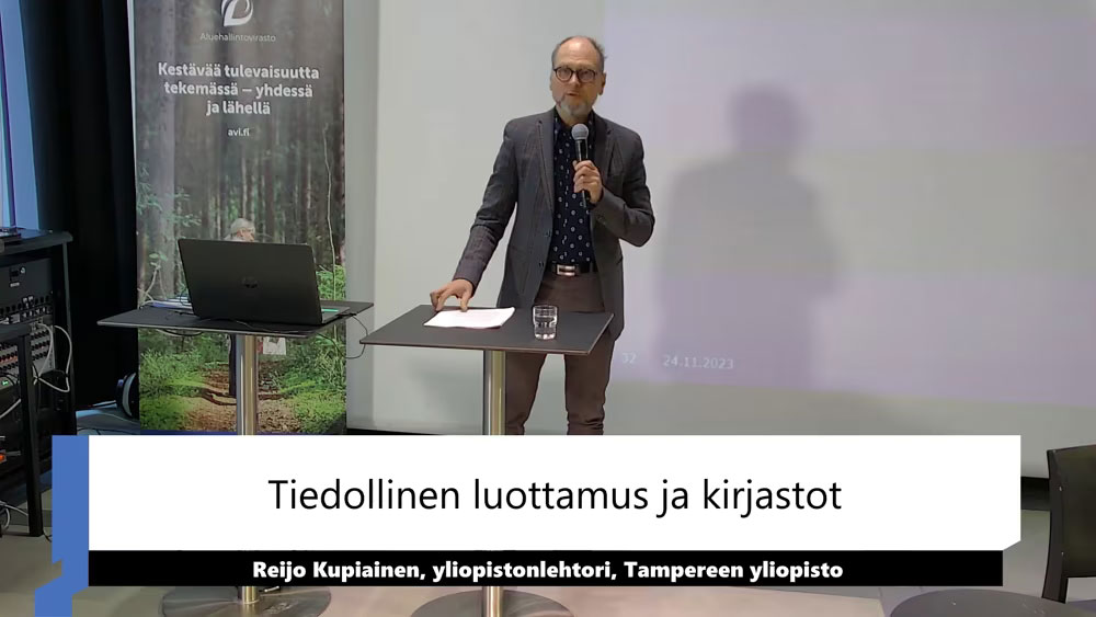 Yliopistonlehtori Reijo Kupiainen Tampereen yliopistosta piti esityksen ”Tiedollinen luottamus ja kirjastot”