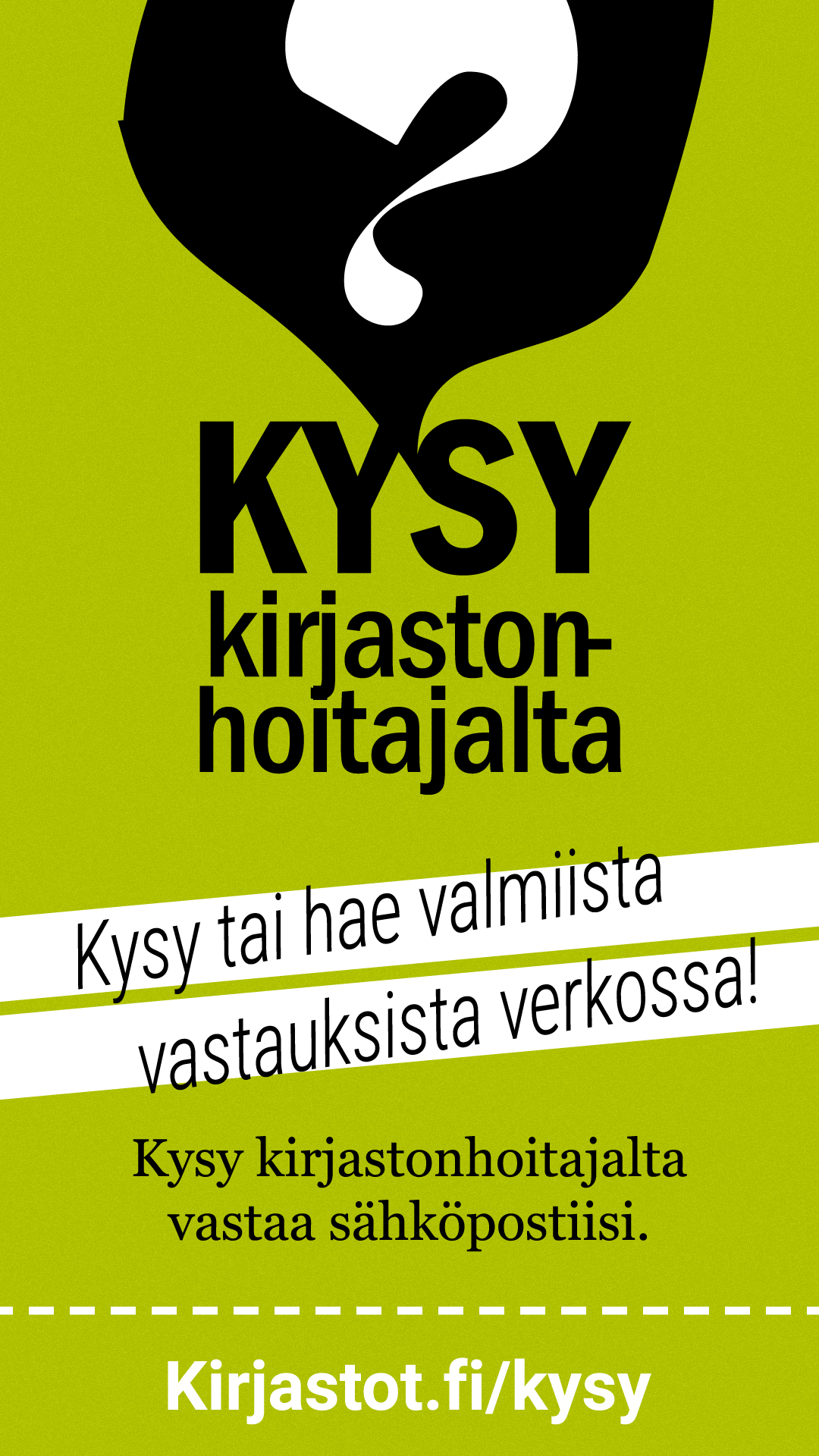 Onko kirjastollanne pystysuuntainen infonäyttö tai kaipaatteko verkkoon materiaalia? Valimistamme valtakunnallisesti ja vapaasti käytettävistä palveluista infonäyttökuvia png-muotoon vuoden mittaan. Tässä ensimmäiset neljä liitteenä: