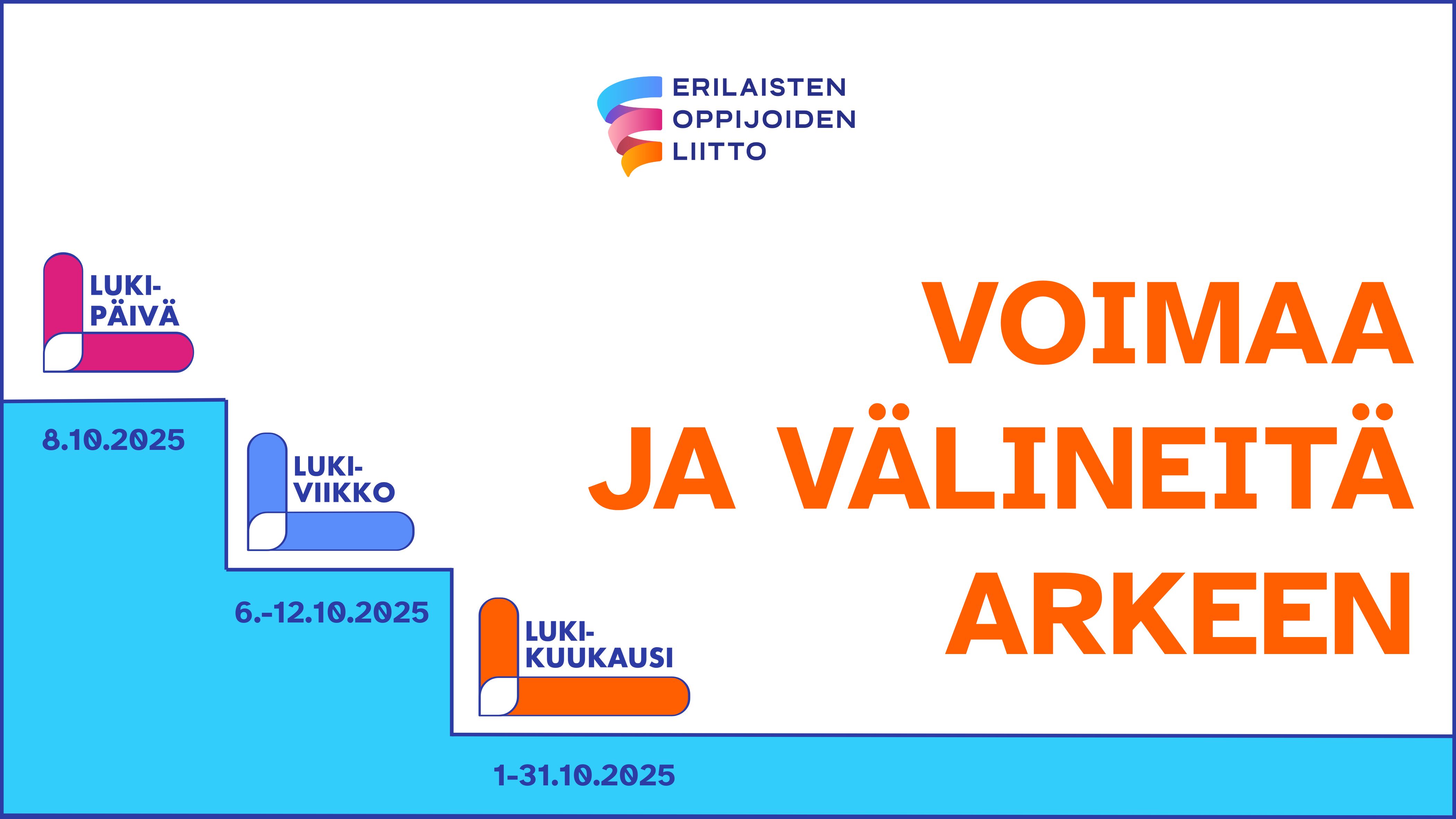 Tänäkin vuonna Lukikuukausi on lokakuu. Lukiviikkoa vietetään viikolla 41 eli 6.–12.10. Kansainvälinen Lukipäivä on 8.10.2025. Teemana on Voimaa ja välineitä arkeen.