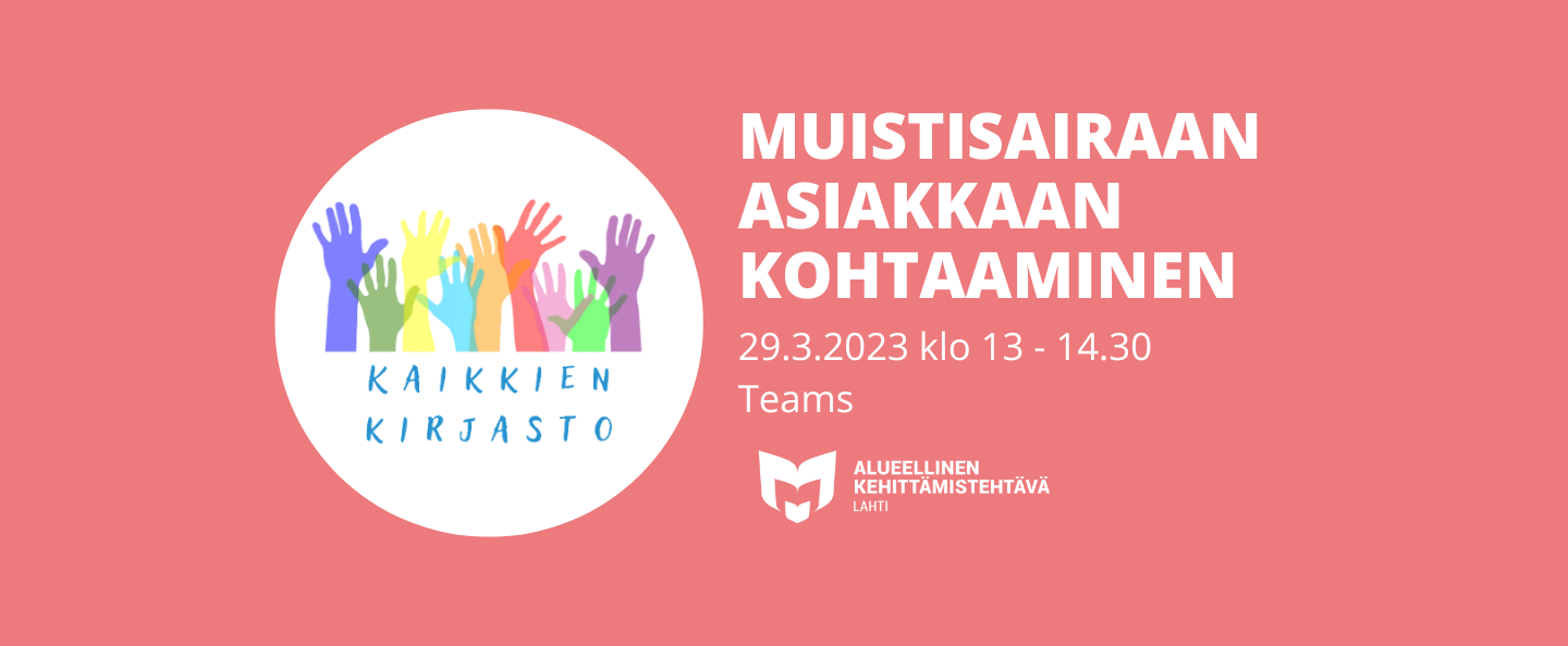 Webinaari on suunnattu erityisesti Etelä-Karjalassa, Kanta-Hämeessä, Kymenlaaksossa ja Päijät-Hämeessä työskenteleville kirjastoammattilaisille, jotka kohtaavat työssään muistisairaudesta kärsiviä henkilöitä. Tilaisuus on avoin kaikille, tervetuloa mukaan.
