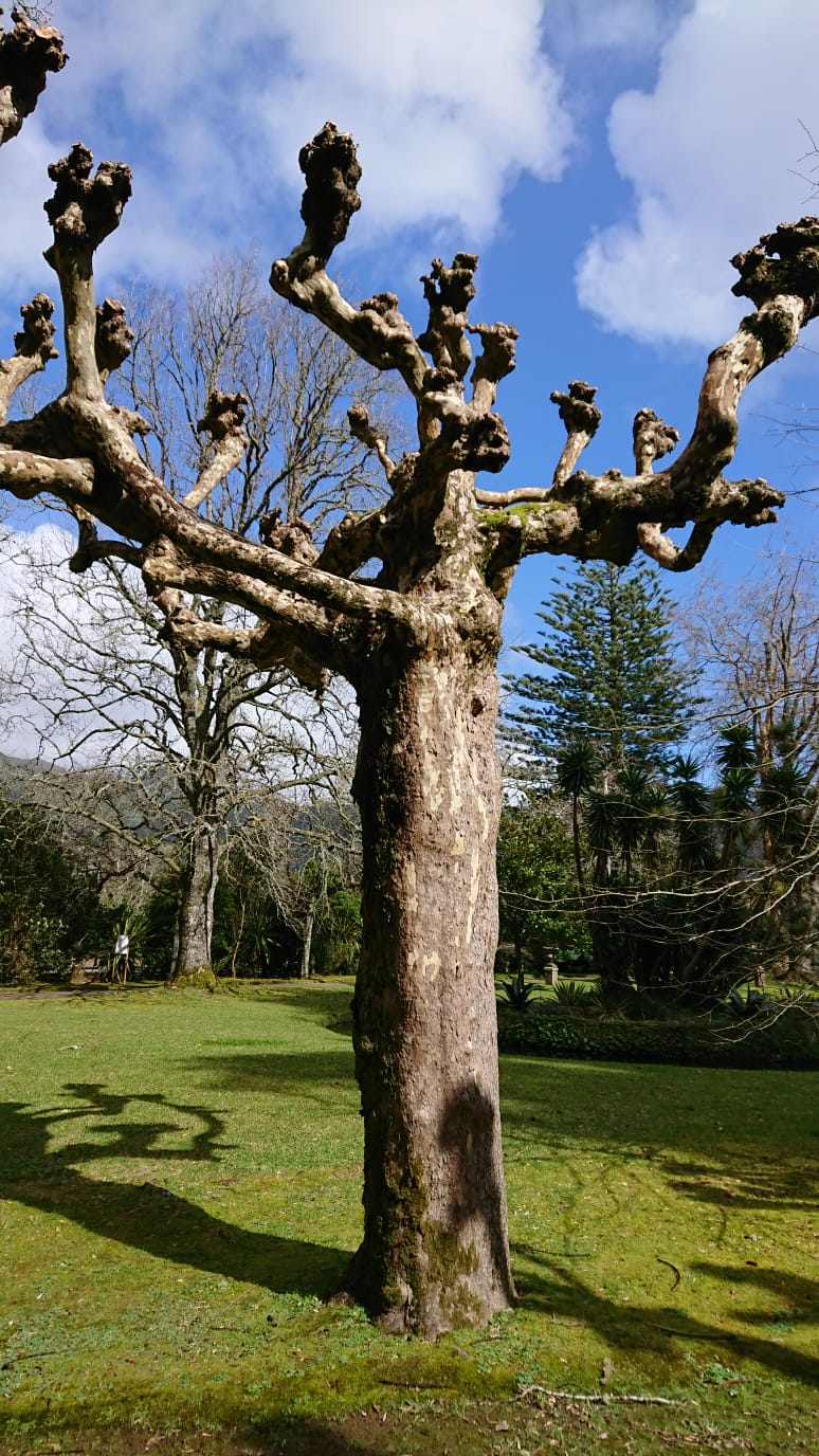Sain vinkin, että kyseessä voisi olla plataani (joita ilmeisesti leikataan Azoreilla tuollaiseen muotoon), mahdollisesti Platanus acerifolia.