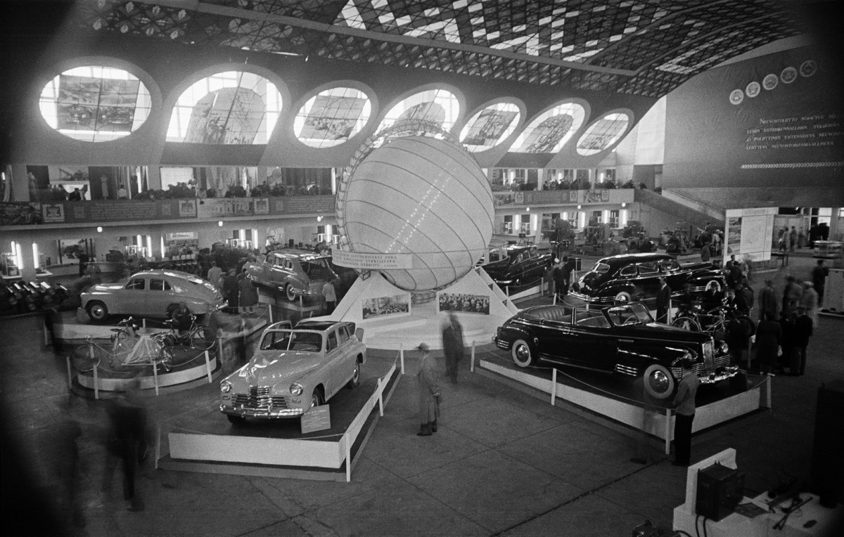 Helsingin Messuhallissa eli nykyisessä Töölön kisahallissa järjestettiin ilmeisesti useampaan otteeseen Neuvostoliiton teollisuusnäyttely. Kyseessä on kuvien perusteella ollut korkean profiilin tapahtuma, johon voisi kuvitella luokkaretkeläisten suuntaavan Linnanmäen ja Korkeasaaren lomassa. Yksi näyttely on ilmeisesti pidetty vuonna 1959. Alla olevien kuvien kuvausvuodesta ei ole tarkkaa tietoa, mutta 1950-luvulta kuitenkin. Näyttääkö tutulta?