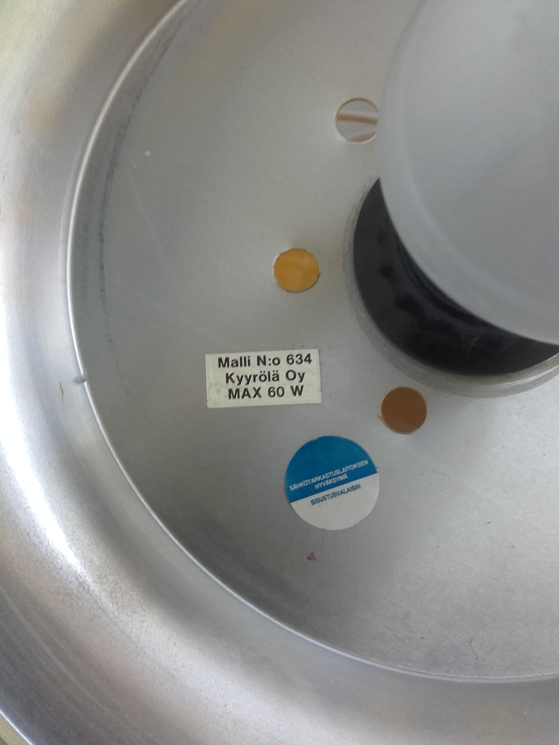 Tuolta Kyyrölän savesta voisi ehkä tiedustella, onko heidän mallistossaan ollut tuollainen kupulamppu. Siellä voitaisiin ehkä myös tietää, mistä firmasta on kyse, jos tämä ei ole heidän tuotantoaan. Lamppuhan ei näytä perinnemallilta ja tuossa leimassakin nimi on Kyyrölä oy. Tästä Kyyrölä oy:stä en kuitenkaan löydä tietoa. Suomalaisen valaisinvalmistuksen historiaa valoittava artikkeli Maaseudun tulevaisuudessa 18.11.2017 ei ainakaan mainitse suurten nimien joukossa sitä, https://www.maaseuduntulevaisuus.fi/ihmiset-kulttuuri/artikkeli-1.214008 Myöskään teoksissa Huusko : Retroaarteet ja Huusko: Suomalaisia valaisimia ei tunneta Kyyrölää.