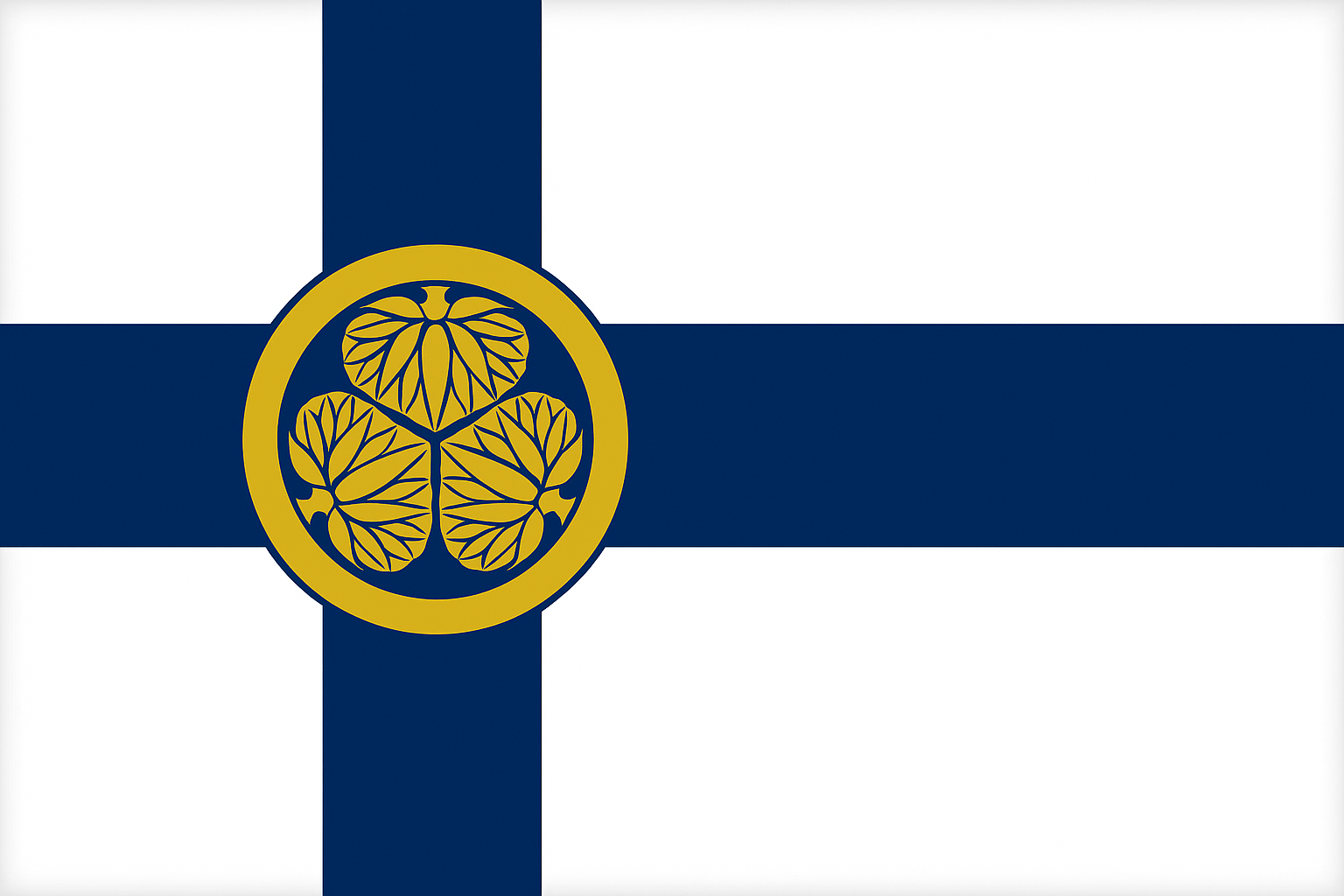 Mutta tuo kuvio kyllä löytyy. Vaikuttaisi olevan japanilaisen Matsudaira-klaanin tunnus (mikä viittaa siihen, että kyseessä ei ole mikään virallinen tai edes puolivirallinen muunnelma Suomen lipusta): https://fi.wikipedia.org/wiki/Matsudaira-klaani
