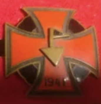 Kuvan merkki näyttää Kevyt patteristo 17:n asevelimerkiltä, ks. Reijo Soinisen Suomen sotilasmerkit -sivusto tai Matti Allonen ym.: Jatkosodan asevelimerkit (2021), s. 307. Tunnistus on kuitenkin epävarma. Kevyt patteristo 17 oli aiemmin nimeltään Linnoituspatteristo 6.