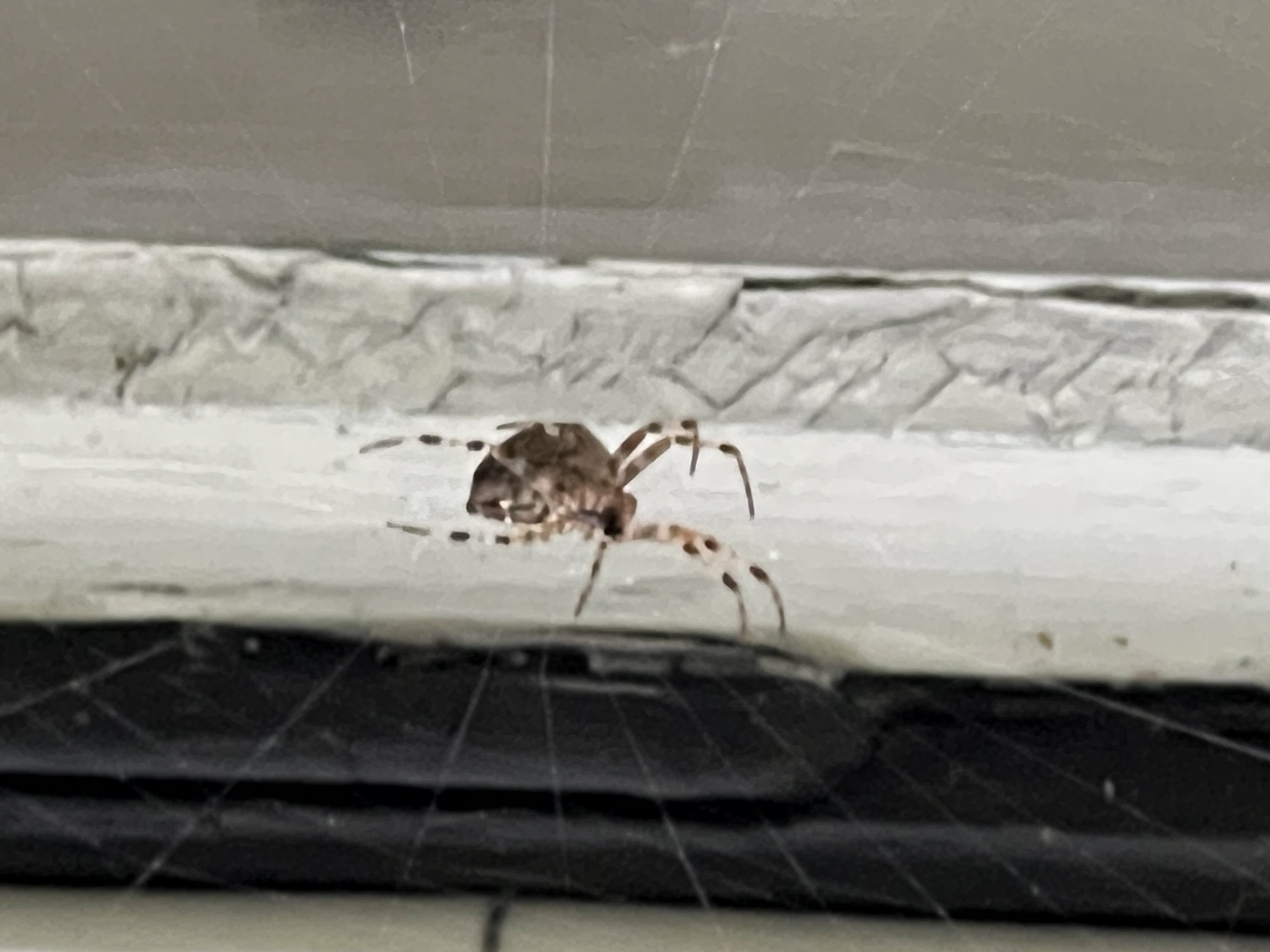 mikähän hämähäkki lie kyseessä? Huomasin keittiön ikkunassa, ulkopuolella, tämän isokokoisen ja pulleroisen hämähäkin - en ole moiseen milloinkaan aiemmin törmännyt.
