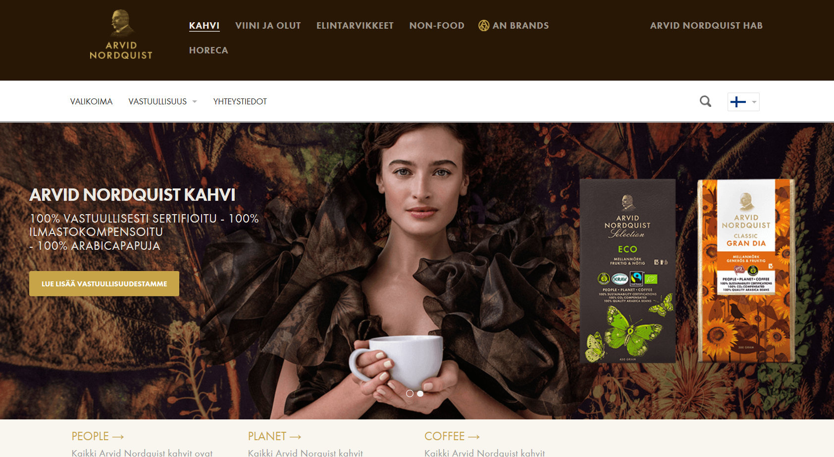 Minkä sarjan isoa valkoista kahvikuppia nainen pitelee molemmin käsin Arvid Nordquist -kahvimainoksessa?
