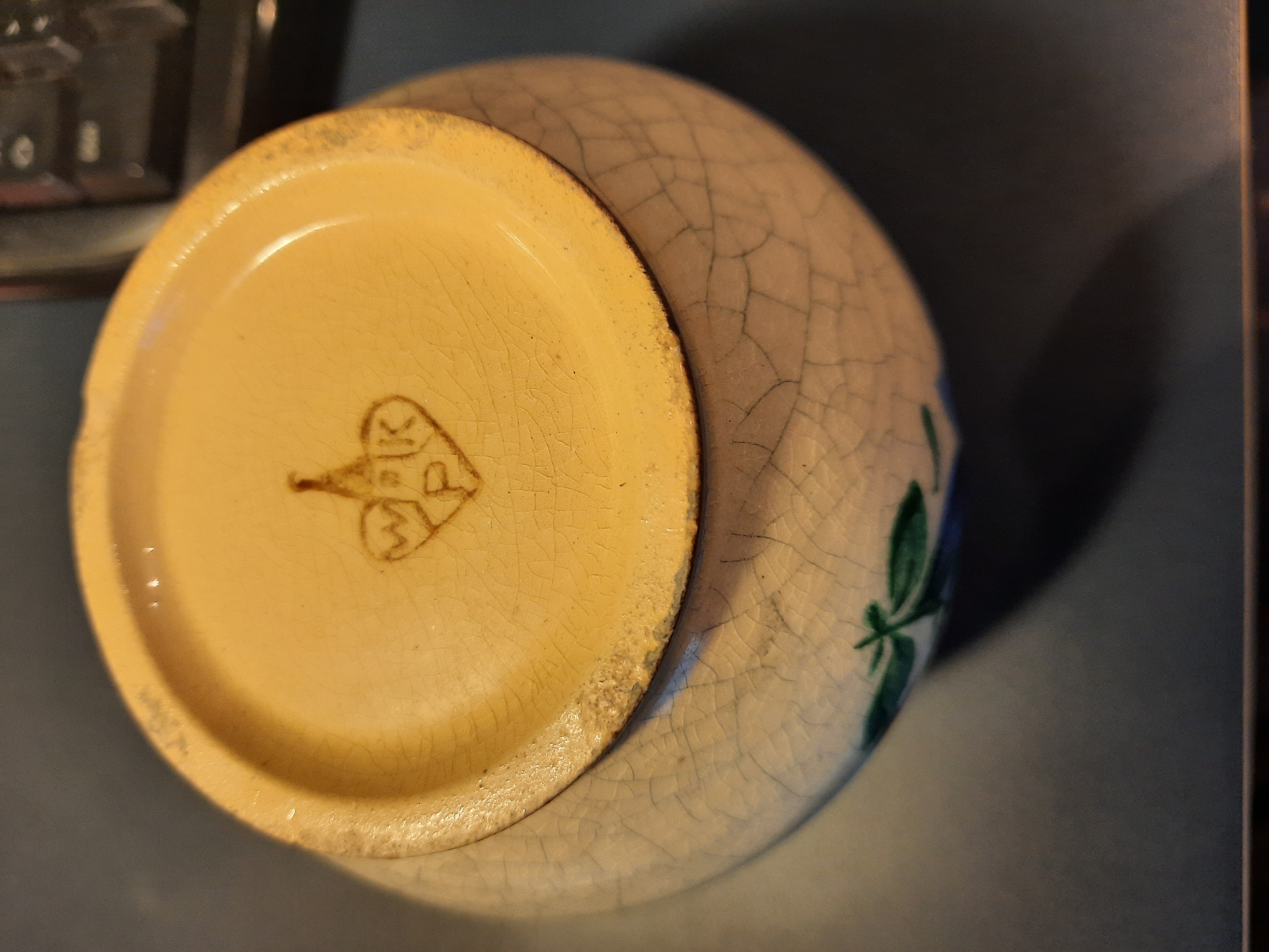 Minulle tuli tällainen astia "sokerikko?" jonka pohjassa on leima. En löydä leimalla tietoja missä tämä on tehty, osaatteko sanoa.