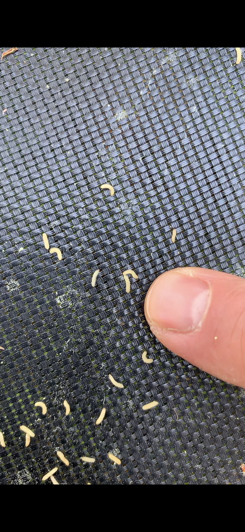 Hei, mitä ovat nämä keltaiset pienet tiukat/madot, joita löytyy tuhansittain esim. trampoliinin matolta? Tuntuisivat tulevan puista? Männyistä?