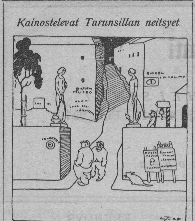 Patsaat sijaitsivat Viipurissa Turunsillan eli Linnansillan päässä, lähellä Viipurin museota. Ne esittivät kauppaa ja teollisuutta. Patsaista löytyy varsin vähän tietoa: ne oli asettanut insinööri Knut Theodor Öhman (Wiipuri 10.1.1905) ja vuonna 1913 ne palautettiin pakoilleen, kun ne oli ensin väliaikaisesti poistettu korjaustöiden vuoksi (Karjala 5.6.1913). Patsaat näkyvät joissain vanhoissa valokuvissa, esim. https://finna.fi/Record/lappeenrannanmuseot.A4422180-22EB-489E-8E45-9D03E0FFA143?sid=4991729915&imgid=1 ja https://finna.fi/Record/lappeenrannanmuseot.B3B8084B-DEB1-4AF0-87A7-642F61BBAA95?sid=4991729915&imgid=1