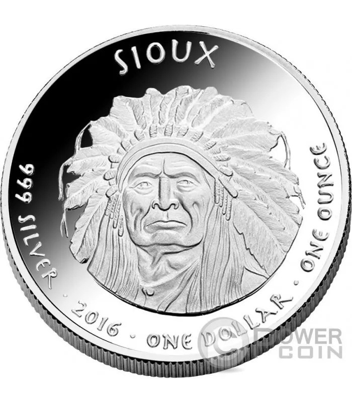 Kyseessä on Yhdysvaltain alkuperäiskansojen rahapajan julkaisu vuodelta 2016, nimeltään 1 oz South Dakota Sioux Buffalo Silver Coin.