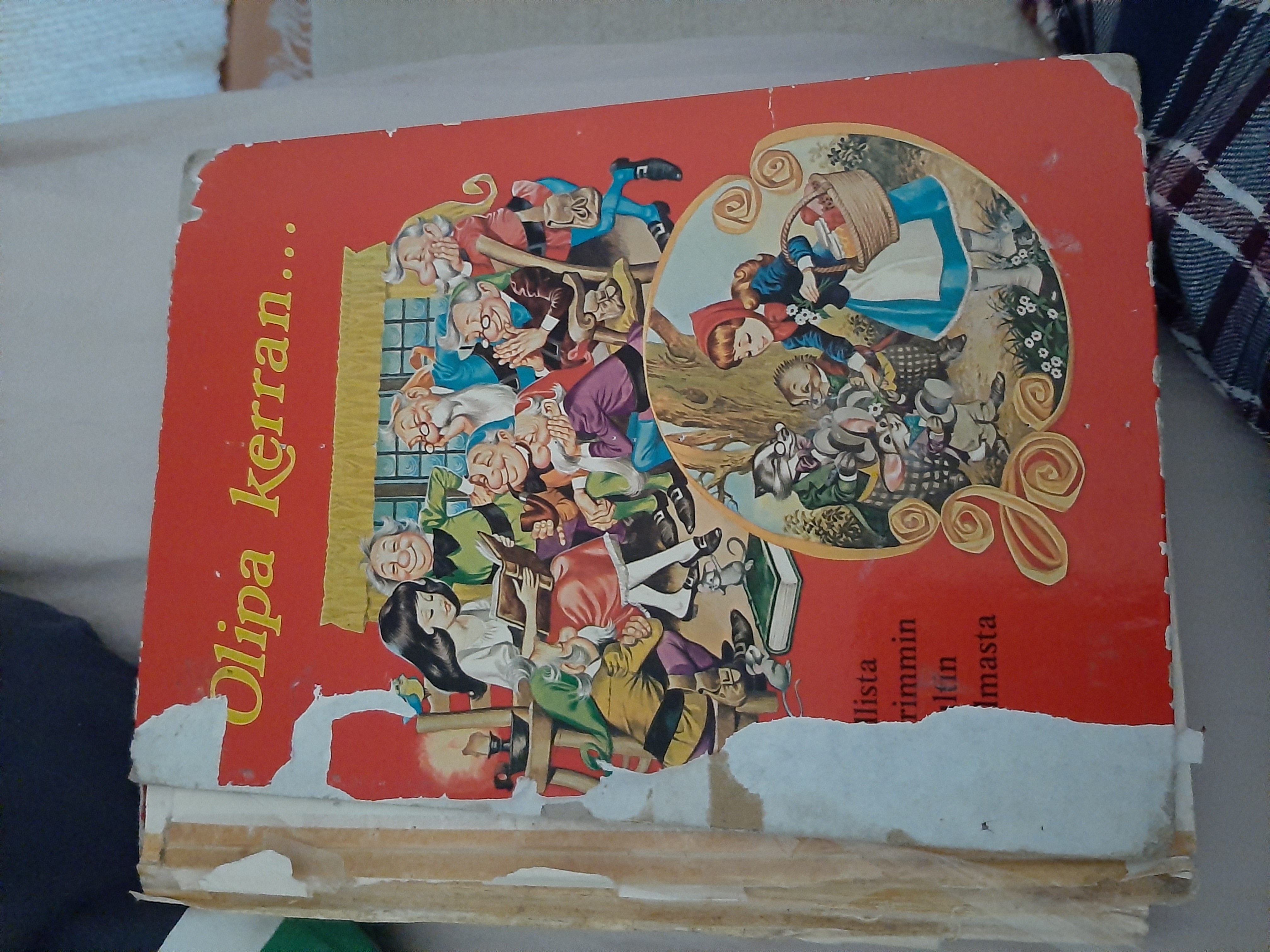 Sain lahjaksi lapsena satukirjan . Kirjasta ei juuri paljoa ole jäljllä. Saako tätä kirjaa mistään. Kirja oli aivan ihana ja olisi mykava lukea se vielä tai saada itselle. Kirja on Kirjaliton Olipa kerran... kannet punaiset ja etusivulla kuvana lumikki ja seitsemän kääpiötä, punahilkka. Takakannessa hiirulainen ja ovi puun sisälle. Grimmin satuja .